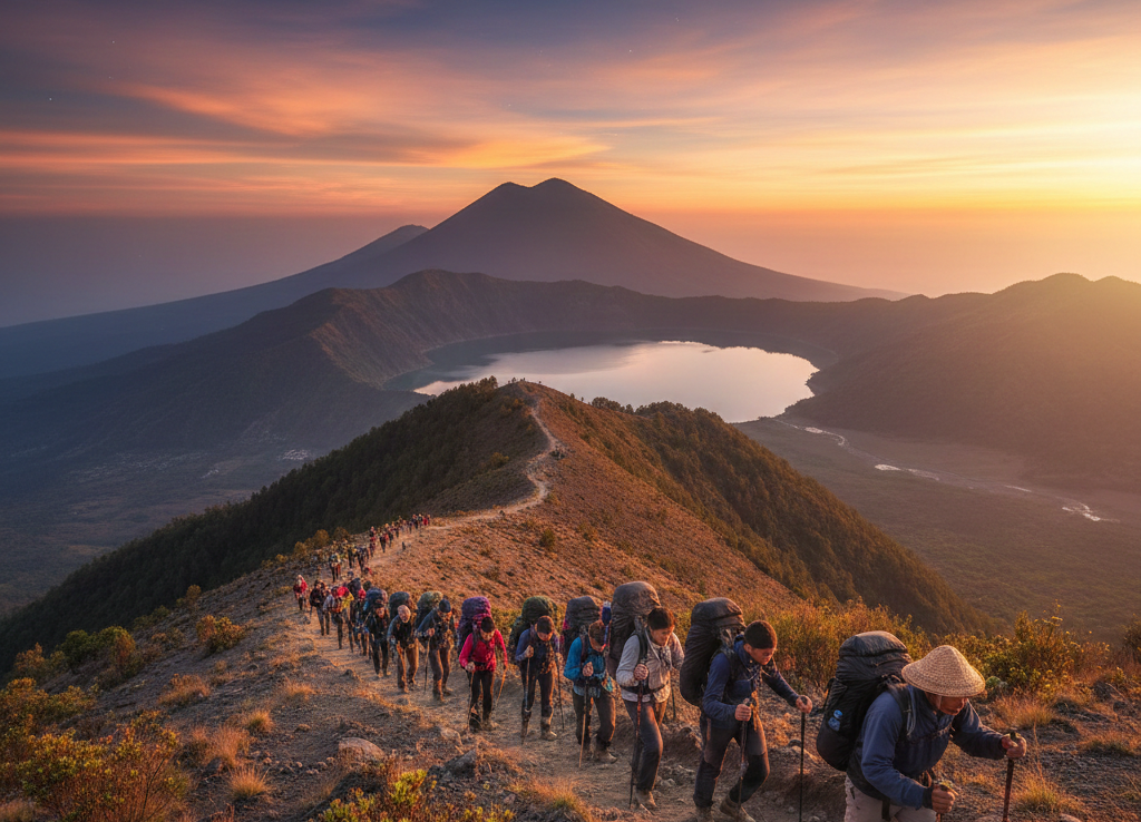 Saksikan fajar menyingsing di atas Samudera Hindia, dengan siluet Gunung Agung dan Tambora di kejauhan. Lepaskan lelah Anda di birunya Danau Segara Anak dan biarkan pemandian air panas alami menyembuhkan raga Anda. Ini bukan sekadar pendakian; ini adalah pertemuan intim dengan alam yang tak terlupakan.